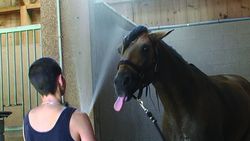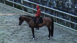 Donc, Alain Cavalier filme l’étalon, avec son cavalier, sans son cavalier, avec ses palefrenières ou seul dans son boxe. Il filme tous les matins, très tôt, à l’heure où le maître des lieux commence à travailler avec Le Caravage. Il filme cette cérémonie